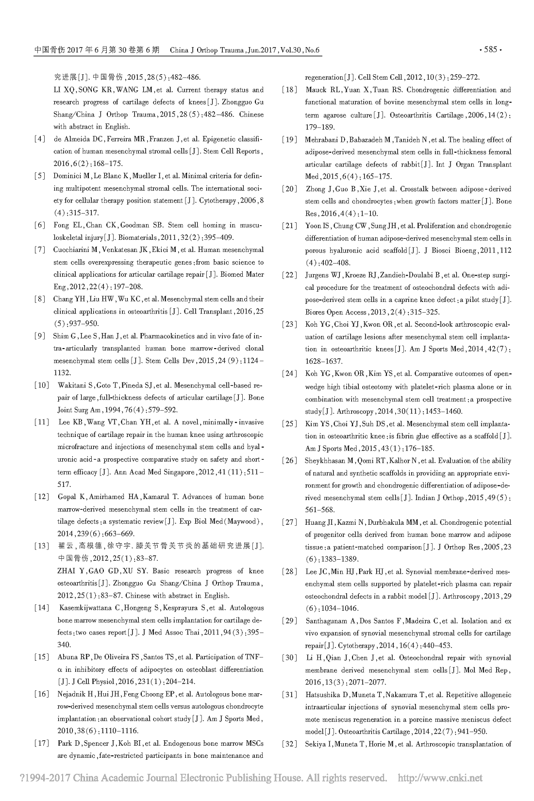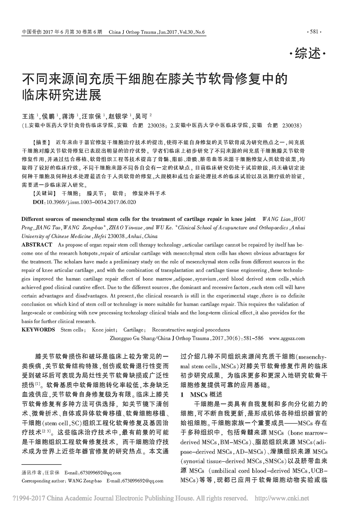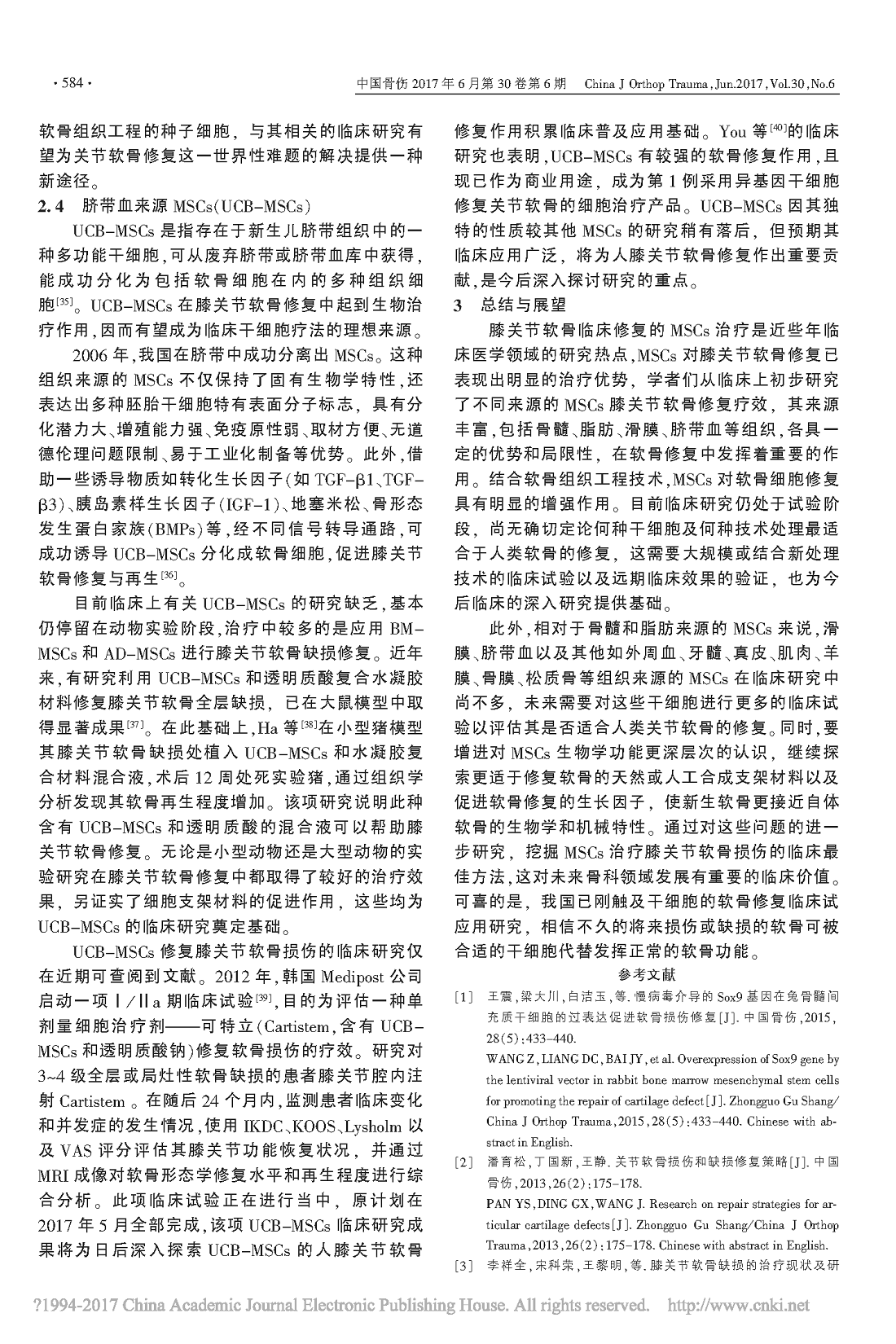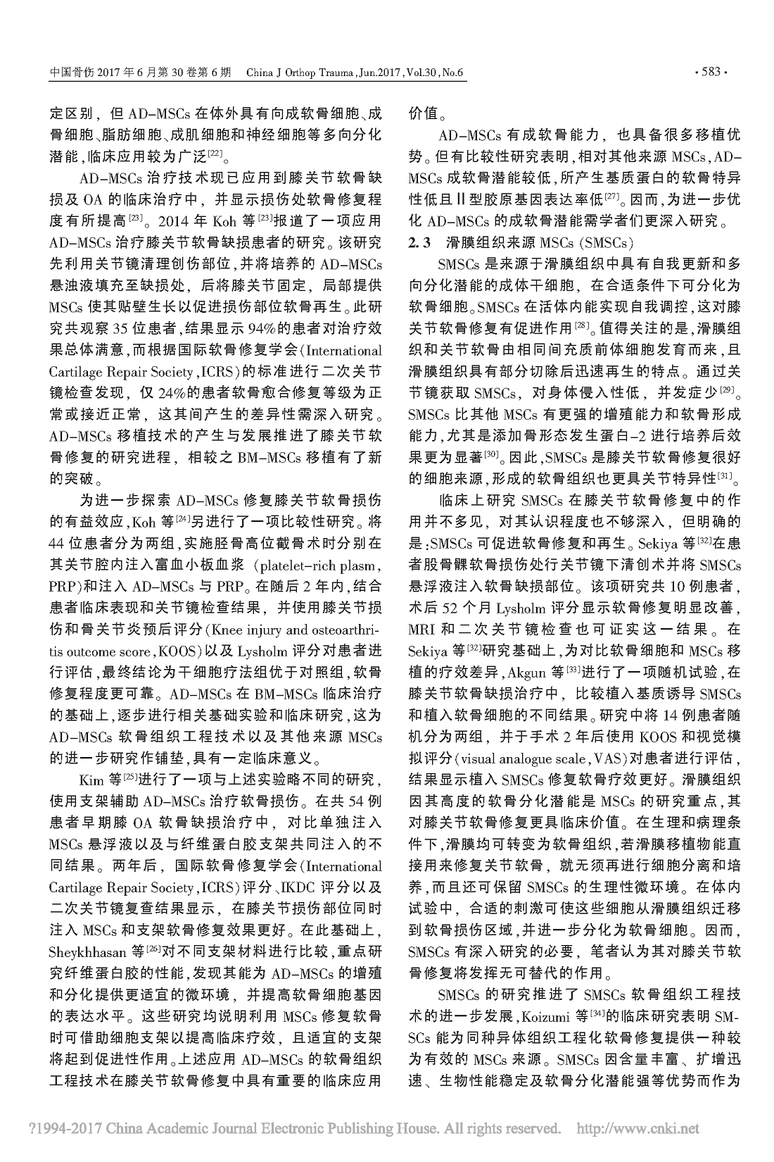 不同来源间充质干细胞在膝关节软骨修复中的临床研究进展