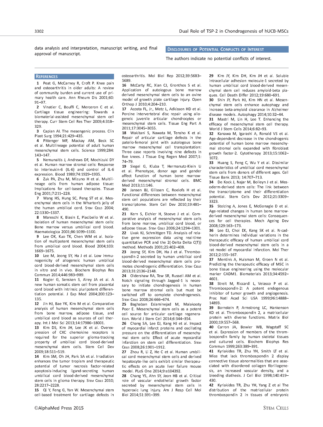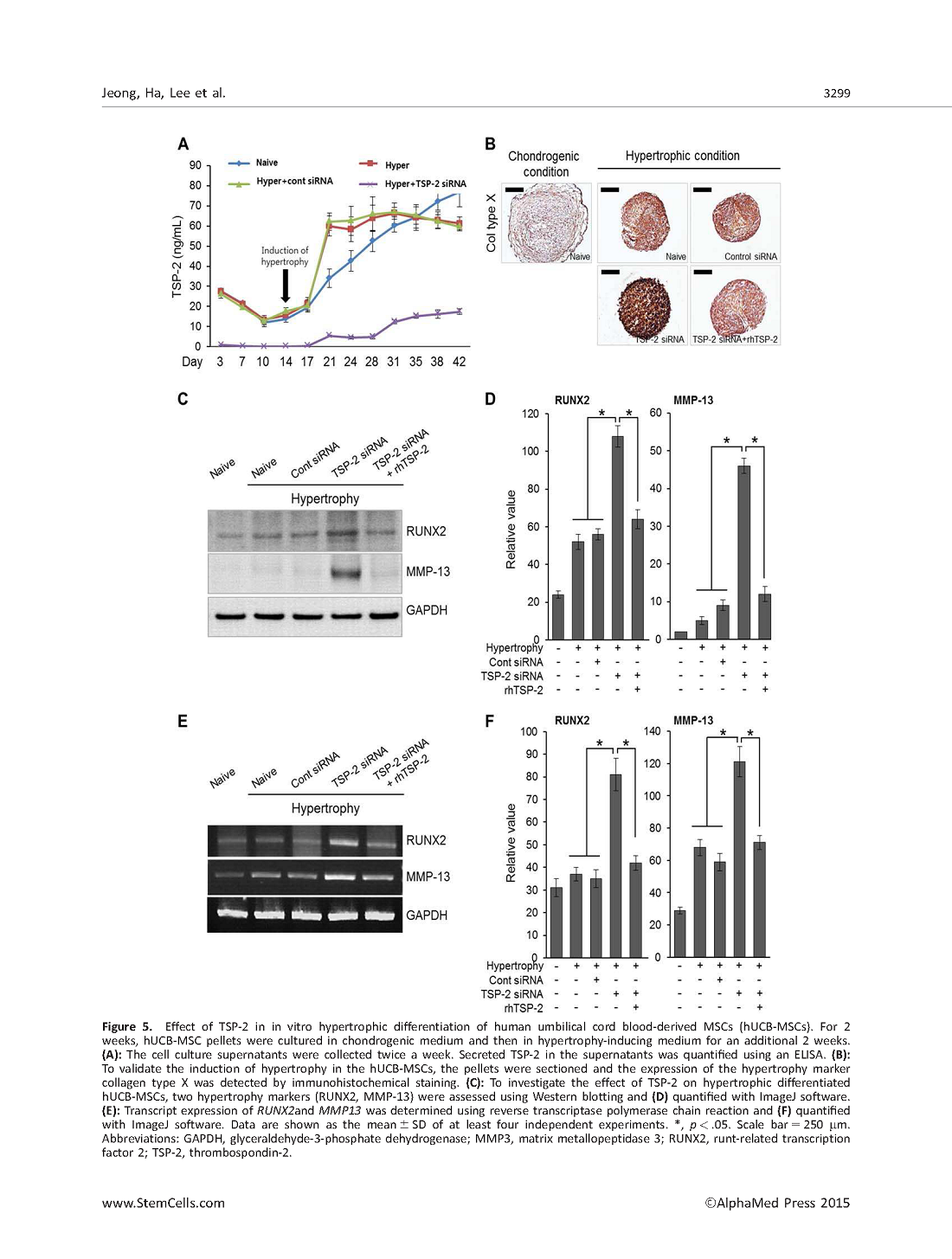 TSP-2的旁分泌作用决定人脐血间充质干细胞向软骨细胞的分化潜能并抑制其肥大成熟
