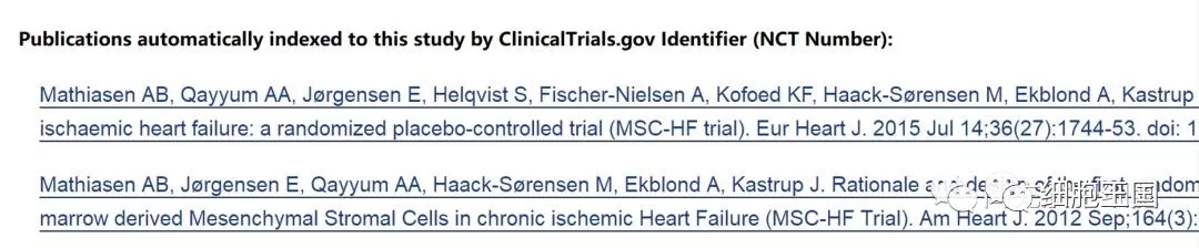 虽然检索到167篇临床研究文章,但不代表167个临床研究的项目,因为1个临床研究项目能发表多篇文章,比如在第一篇的基础上,改变纳入的病人数,或者延长观察时间,或者评价其他方面等等,均可以产生第二篇文章。例子见下图的情况。另外,依然可能存在遗漏一些MSC临床研究的文章,所以,不用太纠结于具体的数字。